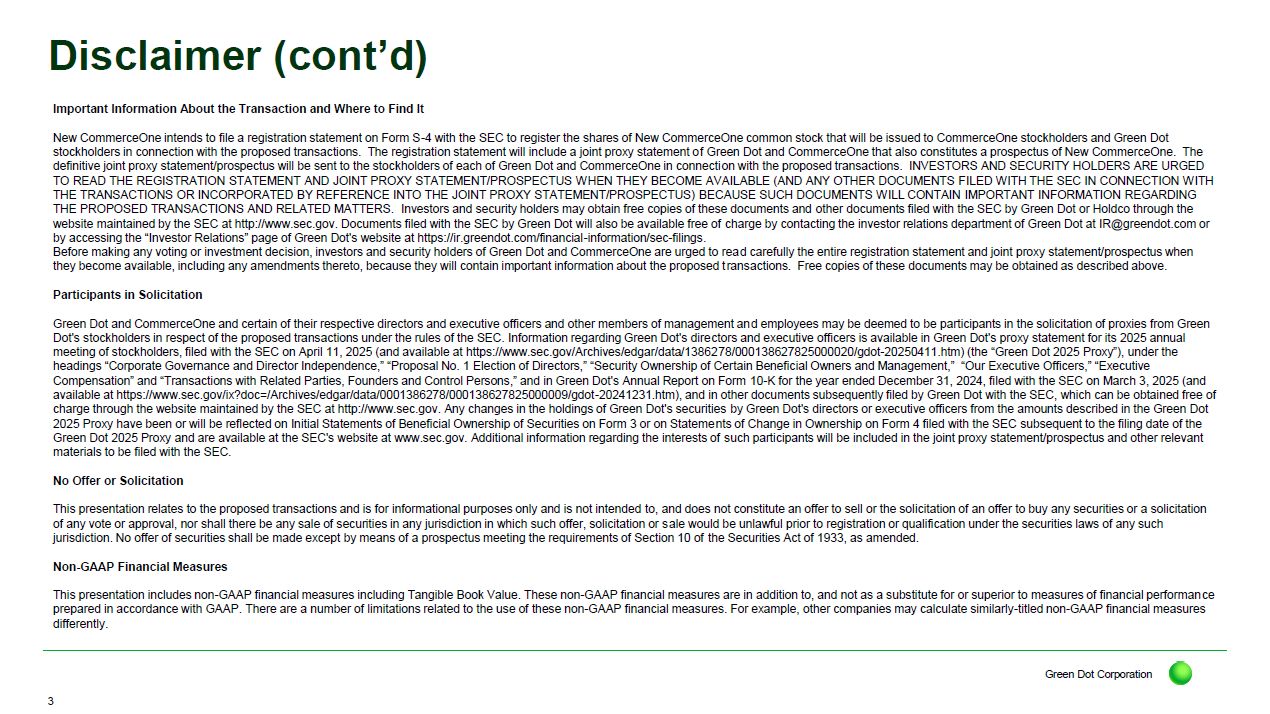 CommerceOne. The definitive joint proxy statement/prospectus will be sent to the stockholders of each of Green Dot and CommerceOne in connection with the proposed transactions. INVESTORS AND SECURITY HOLDERS ARE URGED TO READ THE REGISTRATION