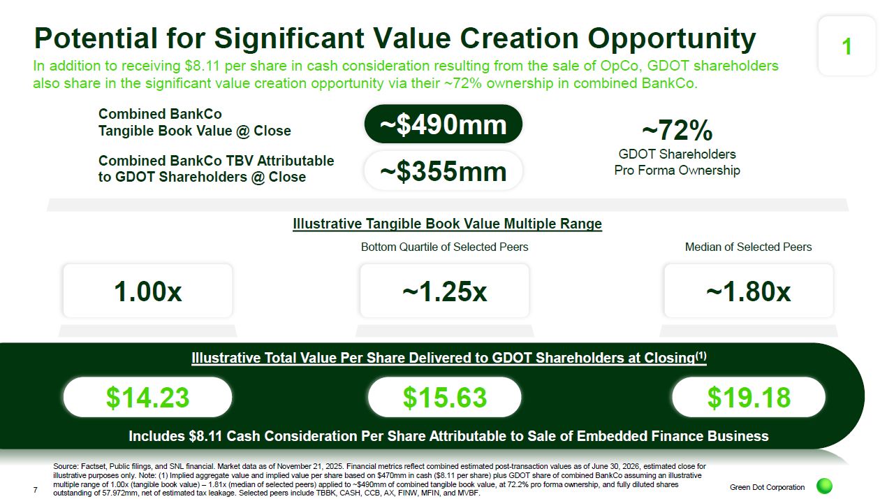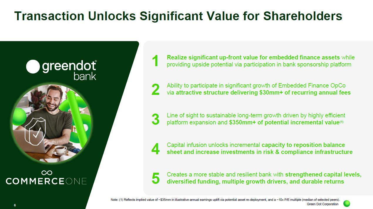 Green Dot believes that the strategic transactions announced today represent an attractive opportunity to enhance value for Green Dot shareholders.