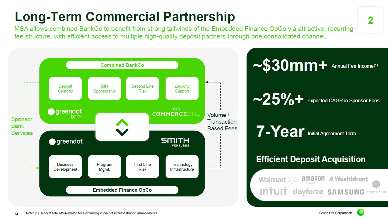 The long-term exclusive commercial agreement with the embedded finance company preserves significant future growth potential for Green Dot’s shareholders.